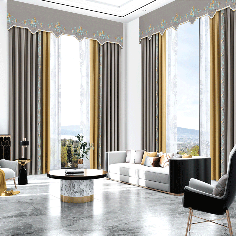 一朝異夕  成品垂直定型簾,垂美優(yōu)雅,黃金等寬?cǎi)薨?,?jīng)久耐洗。高精密工藝,絲綢質(zhì)感,無縫拼接工藝與繡花結(jié)合,花型優(yōu)雅柔美,面料順滑。色彩搭配舒適,黃色搭配淺咖灰色,加上繡花花邊,盡顯優(yōu)雅女性。